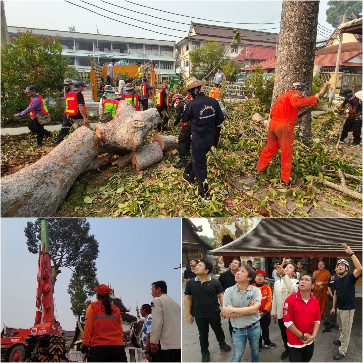 วันที่ 17 เม.ย. 69 นายศิวะ ธมิกานนท์ รองผู้ว่าราชการจังหวัดเชียงใหม่ และทีมผู้เชี่ยวชาญวางแผนตัดแต่งกิ่งไม้เพิ่มเติม เนื่องจากเกรงว่าอาจเกิดการหักโค่นซ้ำและส่งผลกระทบต่อสิ่งปลูกสร้างสำคัญภายในวัด อาทิ หอพระอินทร์ ท้าวเวสสุวรรณ และวิหารเสาอินทขิล ซึ่งเป็นที่ประดิษฐานเสาหลักเมืองของจังหวัดเชียงใหม่