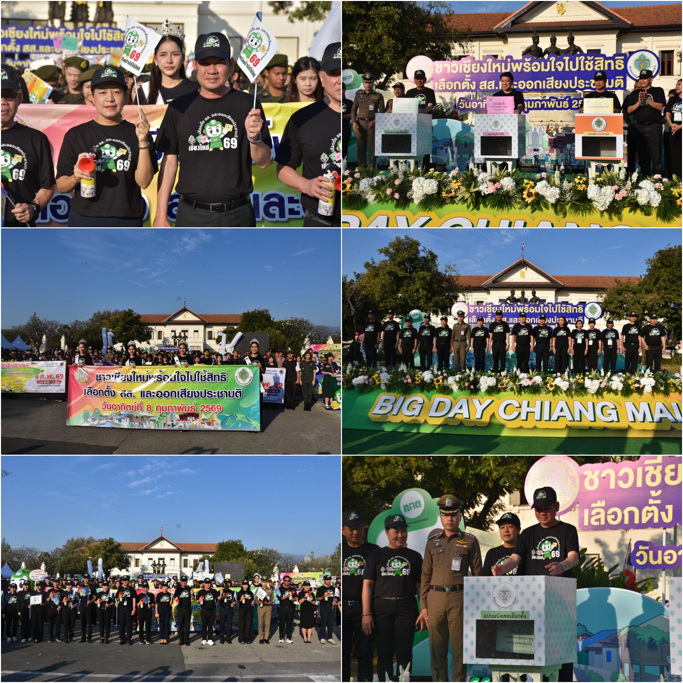 วันที่ 5 ก.พ. 69 ที่ ลานอนุสาวรีย์สามกษัตริย์ จังหวัดเชียงใหม่ นายรัฐพล นราดิศร ผู้ว่าราชการจังหวัดเชียงใหม่ เป็นประธานเปิดกิจกรรมรณรงค์โค้งสุดท้ายการเลือกตั้งสมาชิกสภาผู้แทนราษฎรเป็นการทั่วไป (Big Day) เพื่อประชาสัมพันธ์การเลือกตั้งสมาชิกสภาผู้แทนราษฎร ให้ประชาชนรับทราบอย่างทั่วถึง อีกทั้งเป็นการกระตุ้นเตือน และปลุกจิตสำนึกให้ประชาชน ได้ตระหนักถึงความสำคัญของการเลือกตั้ง รวมทั้งพิษภัยของการซื้อสิทธิขายเสียง โดยมีหน่วยงานภาครัฐ ภาคเอกชน ประชาชน นักเรียนนักศึกษา และภาคีเครือข่ายเข้าร่วมกิจกรรม กว่า 1,000 คน